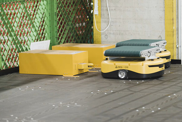 また、充電が必要なAMRは、自動的に充電ドックに接続し、充電が完了すると自ら稼働を再開します。