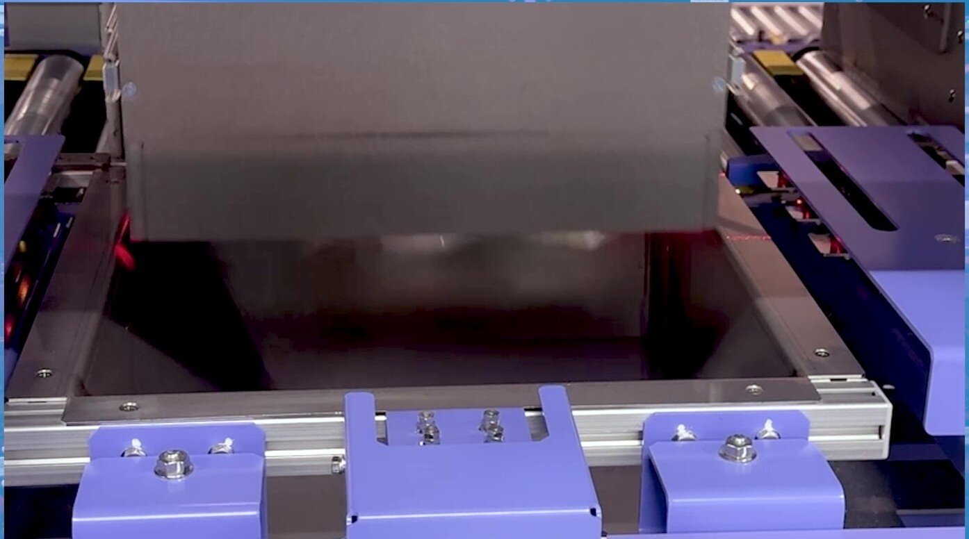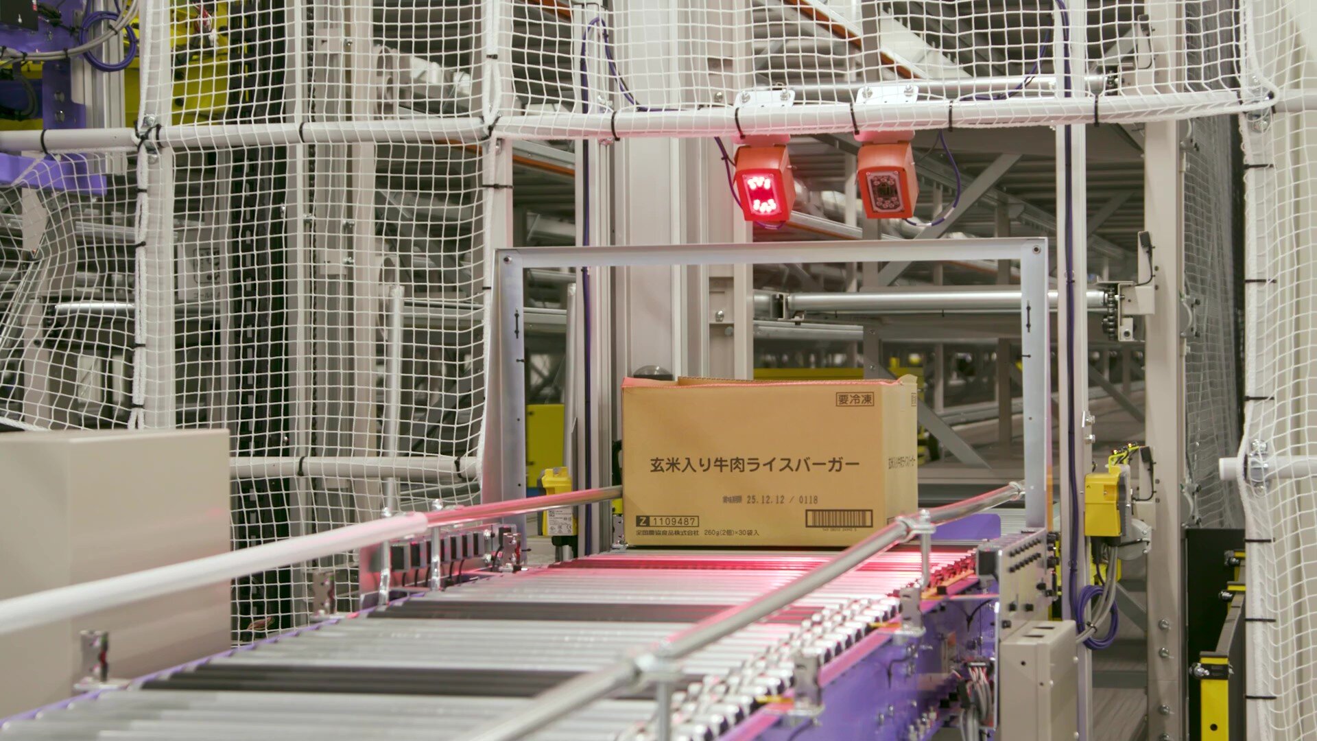 The packing area is divided into three zones based on carton size. For the 60 and 80 size cartons—which account for approximately 90% of shipments—an automated packing system is utilized. Shipping cartons are first automatically built. Next, four product totes and four empty shipping cartons are conveyed simultaneously to the automatic transfer unit. The totes are designed without a bottom plate; by sliding them over the top of the shipping cartons, the products are automatically transferred into the cartons. After the transfer process, images of both the shipping cartons and the tote boxes are captured by a vision system, and the system automatically verifies that the totes are empty to prevent any omissions. Dry ice is then added, and the cartons are automatically sealed. For 100-size cartons or products with irregular shapes, items are diverted to a separate line where packing is performed manually.